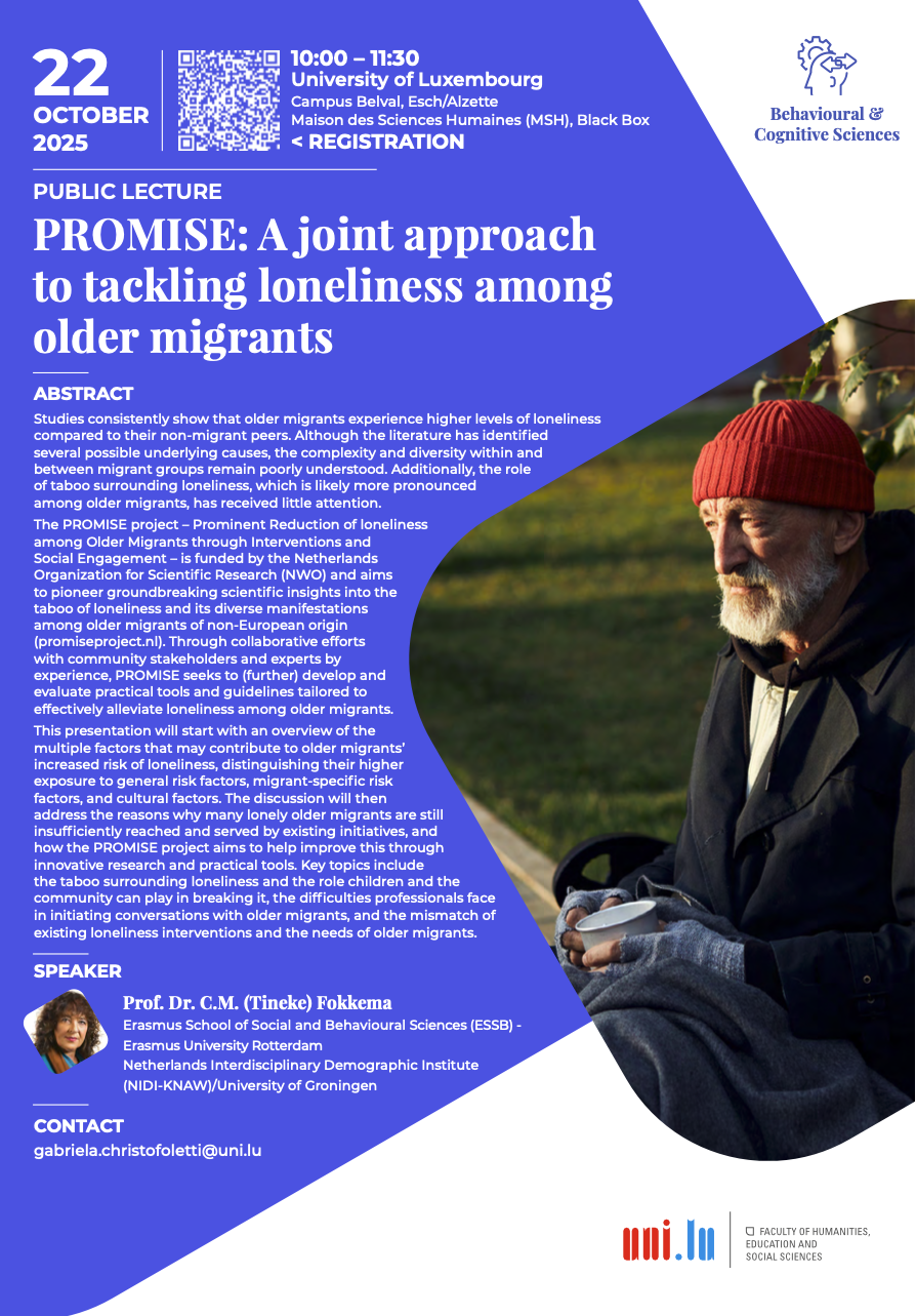 October, 2025 – Prof. Dr. C. M. (Tineke) Fokkema will visit the institute of Lifespan Development, Family and Culture and, among other, hold a public lecture on researching loneliness in older migrants.